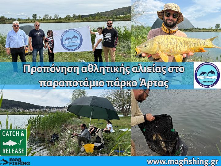 Μία ακόμη επιτυχημένη διοργάνωση αγώνα ψαρέματος έλαβε μέρος στο Παραποτάμιο Πάρκο της Άρτας. Mε μεγάλη επιτυχία και τις καλύτερες δυνατές εντυπώσεις από τους συλλόγους , τους αθλητές και τους επισκέπτες, έγινε ο πρώτος διασυλλογικός αγώνας γλυκών νερών (εσωτερικών υδάτων), με την χρήση barbless αγκιστριών, δηλαδή χωρίς αρπάδι, για την προστασία των ψαριών της λίμνης. Το παραποτάμιο πάρκο είναι μια λίμνη δίπλα στην πόλη της Άρτας, με εντυπωσιακά ψάρια και φυσική ομορφιά, που ευελπιστούμε με τις κατάλληλες υποδομές, να γίνει πόλος έλξης για τους αθλητές ψαράδες απο την Ελλάδα και το εξωτερικό!
