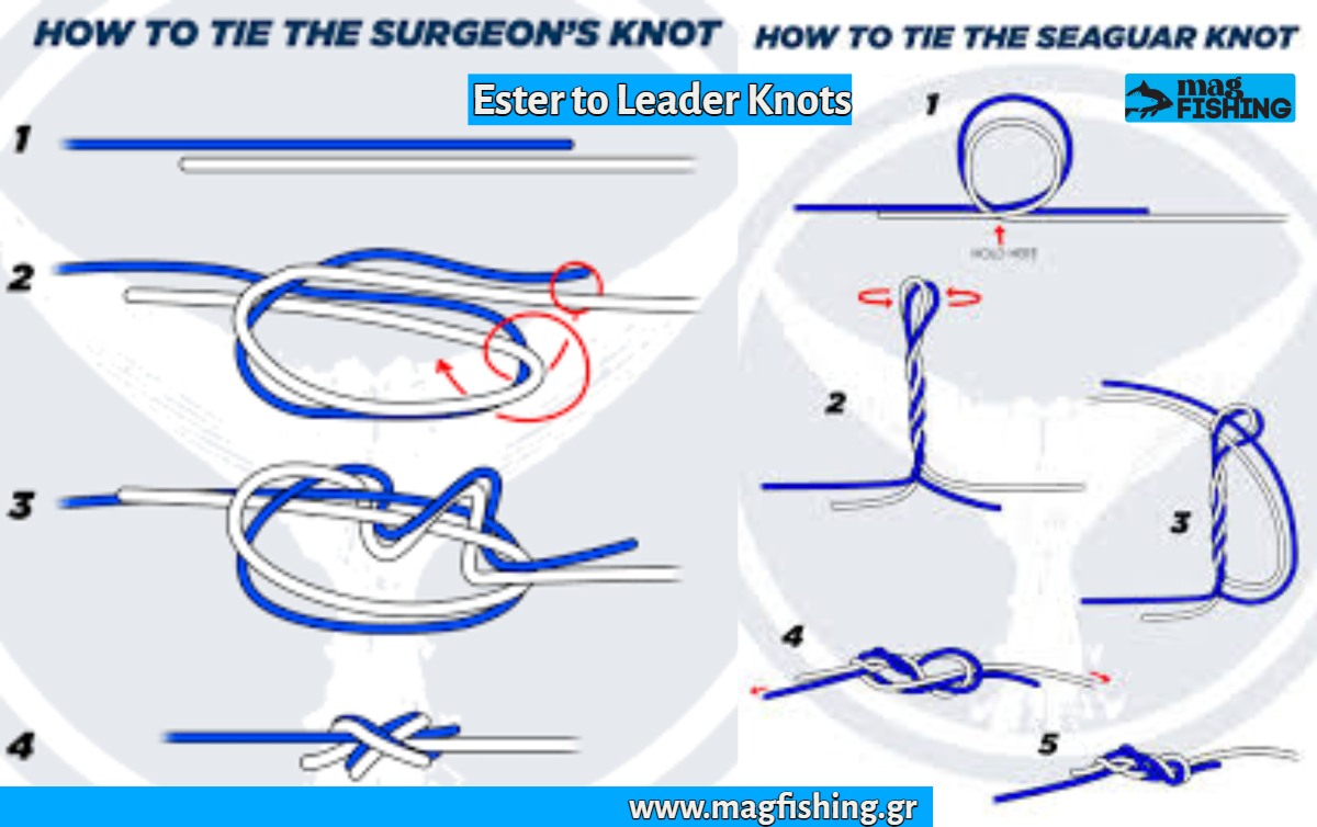 Πάμε να δούμε τι χρειάζεται για να ψαρέψουμε σωστά το ester. Επειδή δεν έχει μεγάλη αντοχή στον κόμπο , δεν επιτρέπεται να δένουμε απευθείας το τεχνητό δόλωμα πάνω του. Επιπλέον, τα περισσότερα ester της αγοράς είναι χρωματιστά, έχουν πολύ ζωηρές αντανακλάσεις, οπότε η χρήση ενός fluorocarbon παράμαλλου είναι μονόδρομος. Επειδή δεν έχει μεγάλη αντοχή, ο κόμπος που θα κάνουμε πρέπει να είναι πολύ συγκεκριμένος, εύκολος, και απλός. Ο κόμπος που προτείνεται από την παγκόσμια κοινότητα του ester με το παράμαλλο, είναι το κλασικό οκταράκι. Ονομάζεται αλλιώς και seaguar knot, ενώ πολλοί προτιμούν και τον surgeon knot, που είναι πιο γρήγορος.